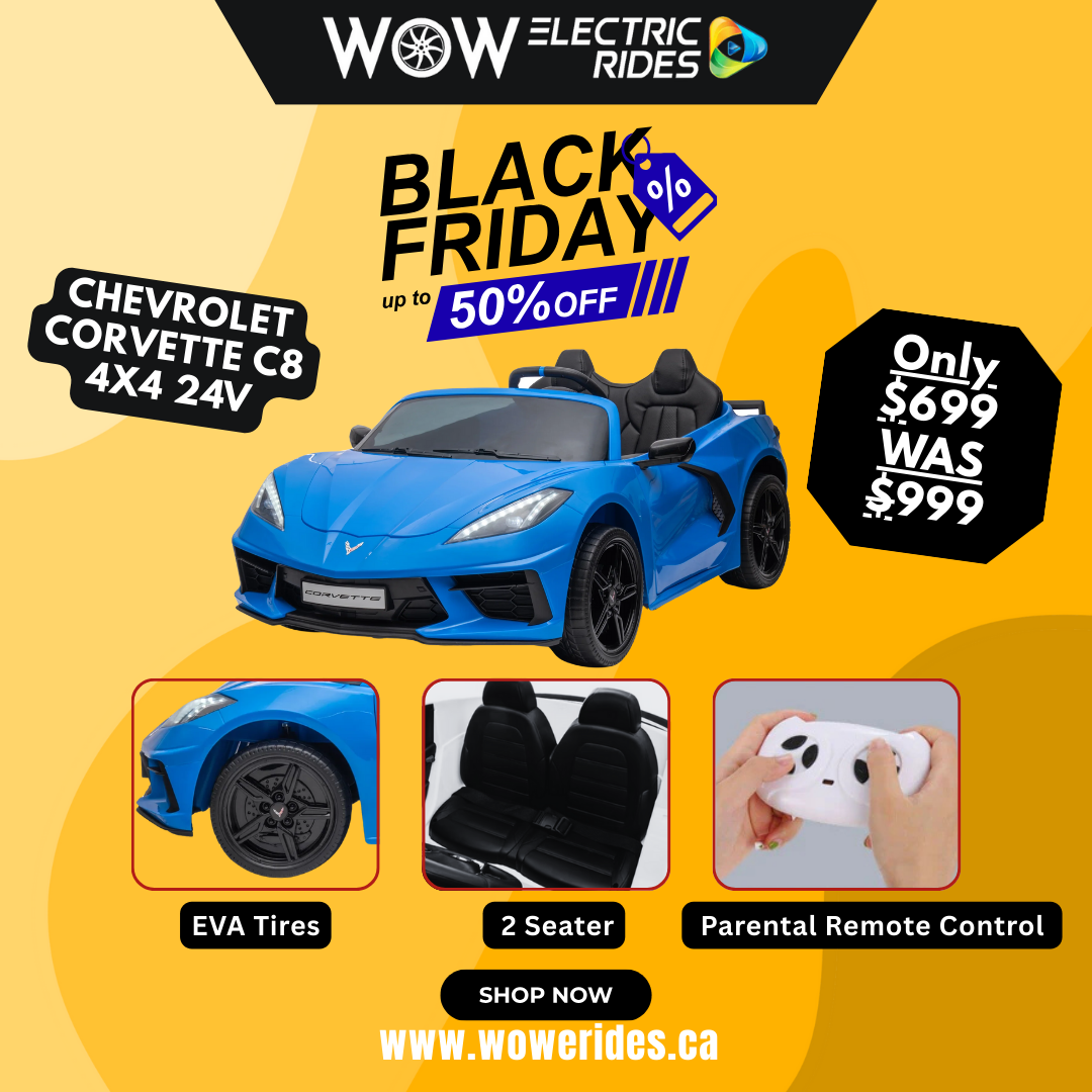 Chevrolet Corvette C8 4X4 24V 2 Seater-Kids Ride On Car – WOW Electric Rides / WOW Technologies