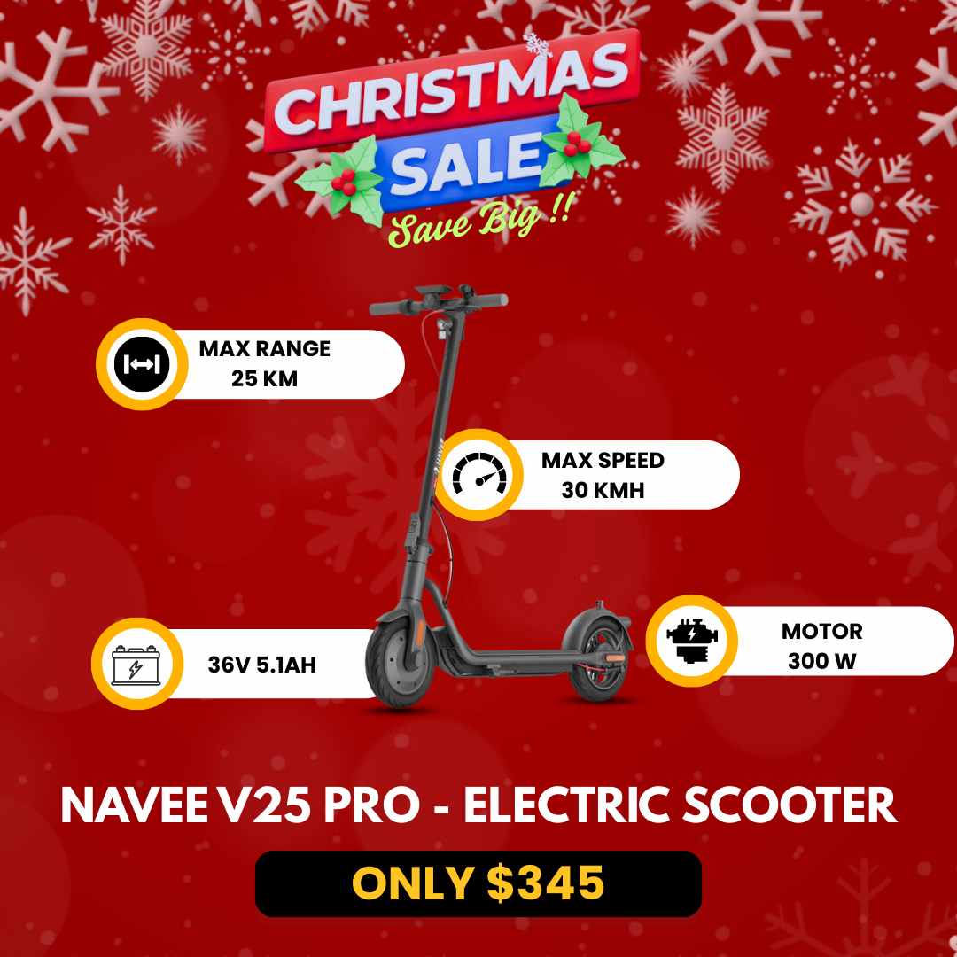 Weighing just 17.1 kg, the Navee V25 Pro is your ultimate urban companion. Its innovative double-folding handlebar and compact frame allow it to transform in seconds, making it effortless to carry onto public transport or store in a closet, car trunk, or under a desk.