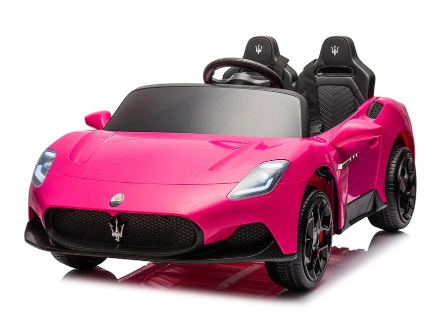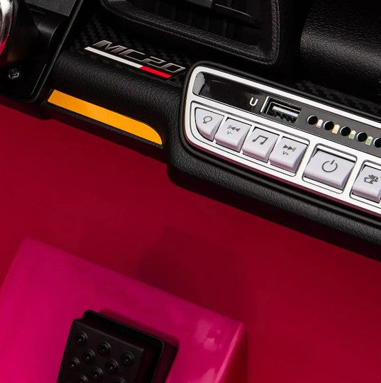 Give your child the ultimate driving experience with the licensed Maserati MC20 ride-on car. Engineered for superior performance, this impressive vehicle is powered by a robust 24V battery and four 540 motors, achieving speeds of 5-8 km/h. It features a generous 50 kg weight capacity and rear spring shock suspension for a smooth ride on its EVA rubber wheels. With up to 90 minutes of operation, realistic LED lights, an MP3 player, and a long-range parental remote, it combines safety and excitement. The padded vegan leather seat with an adjustable safety belt ensures comfort for children aged 3-6.