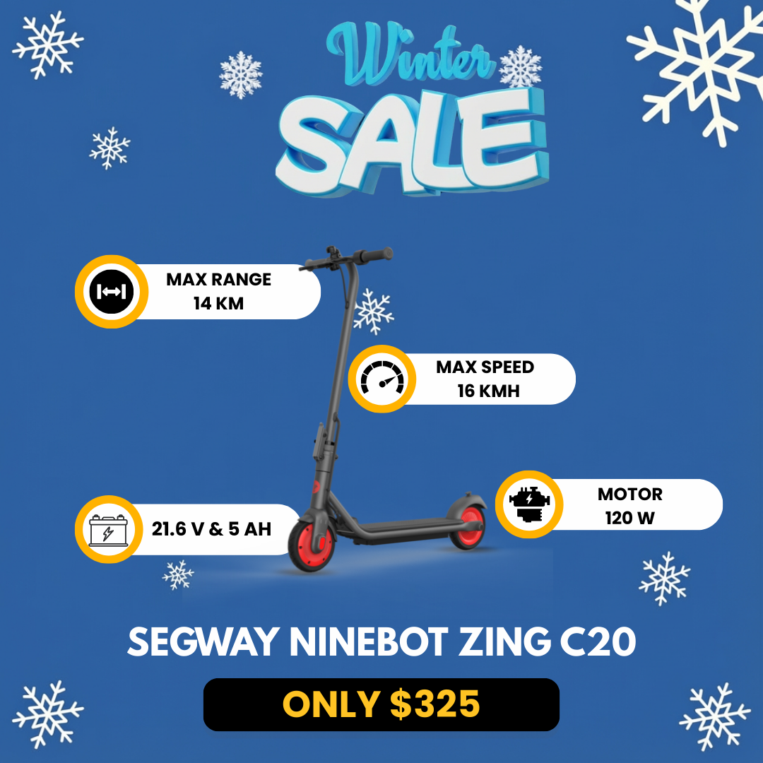 The Zing C20 features elements of the Segway Adult Kickscooter lineup, but with a pop of personality. Vibrant red accents and underglow lighting allow riders to show their personality. 3 riding gear modes enable riders to select a mode that suits their riding style: Turbo, Cruise, and Safe Mode.