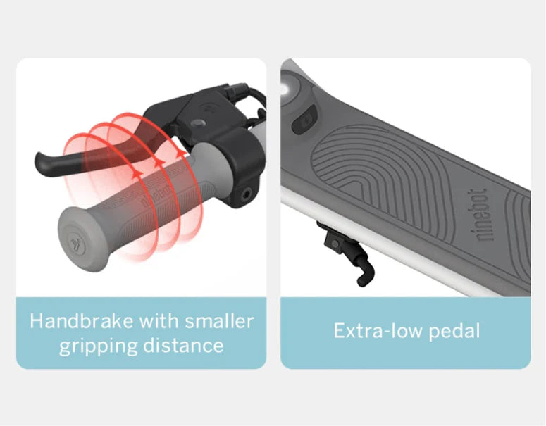 An extra-low pedal, handbrakes with smaller gripping distance, and a streamlined curved body with no angles make the ZING C8 electric scooter perfect for 8 to 14-year-olds.