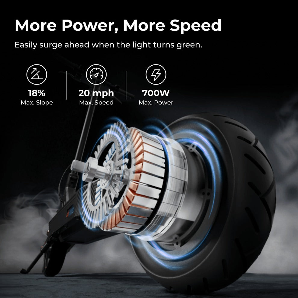 10” tubeless tires provide comfort, stability, and puncture resistance for a smooth, worry-free ride on any terrain.