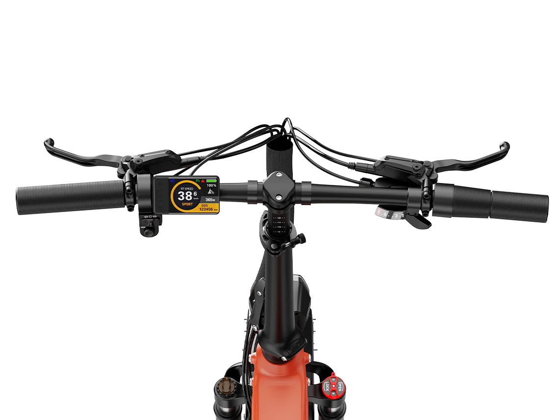 Shimano 8-speed gears, scratch-resistant finish, and upgraded folding system fold Mars 3.0 in just 10 seconds. Available in Vivid Orange, Stormy Blue, and Nightrider Black.