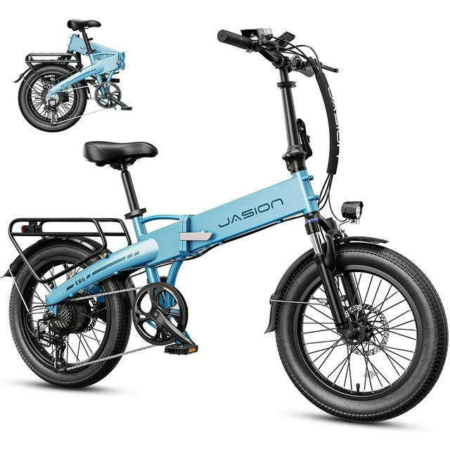 The Jasion EB6 is a powerful, versatile, and foldable electric bike built for adult commuters and adventure riders alike. Featuring a 500W motor (1000W peak), a 504Wh built-in removable battery, and UL2849 safety certification, the EB6 reaches 25 MPH with up to 55 miles of range. Whether you're commuting through the city or tackling rough trails, the EB6 handles it all with style and confidence.