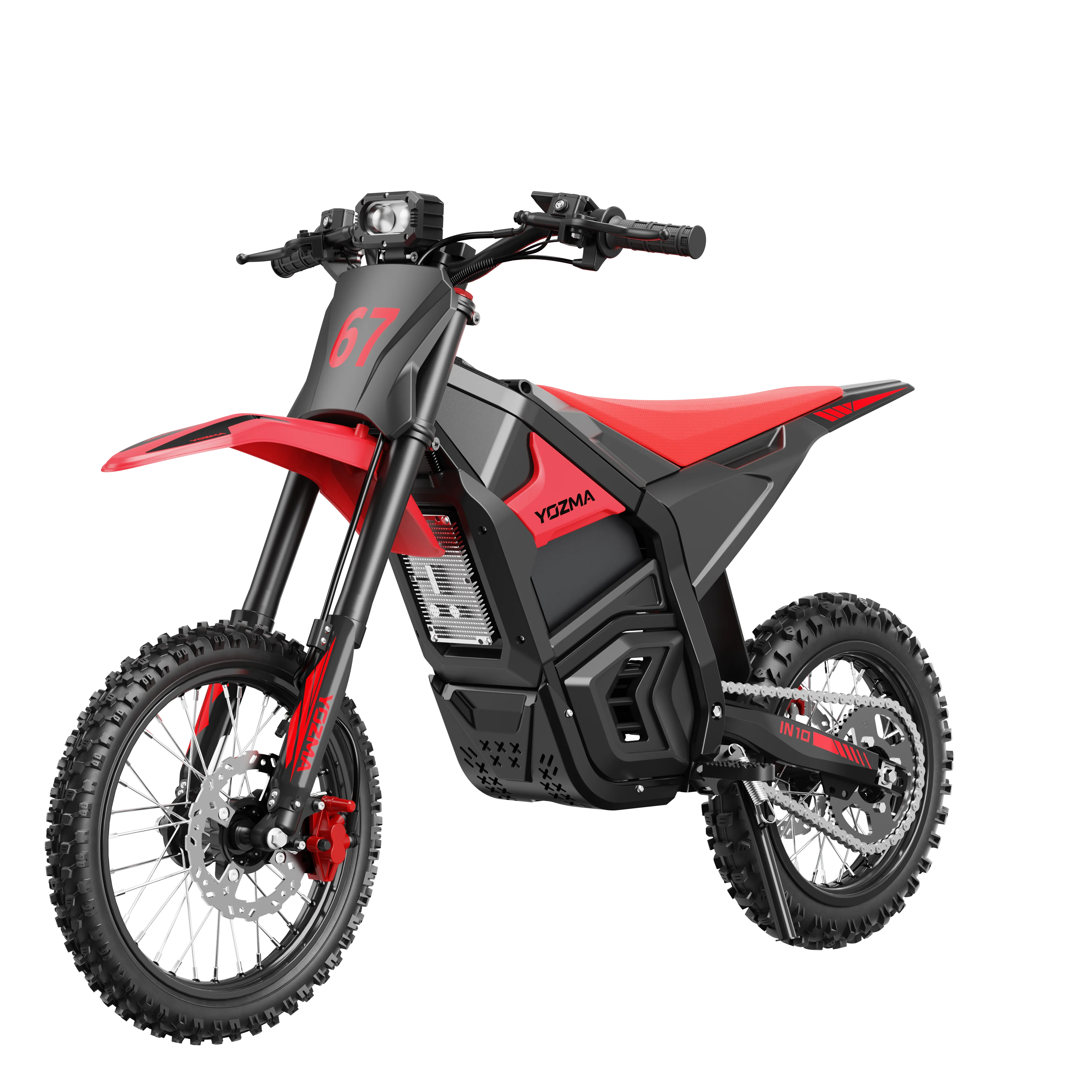 The Yozma IN 10 is a high-performance electric dirt bike engineered to redefine off-road boundaries for teens and adults. Unlike standard electric bikes, the IN 10 features a centrally mounted 2600W brushless mid-drive motor, providing an incredible 146 Nm of peak torque. This is a serious machine built for technical trails, steep climbs, and high-speed maneuvers, delivering a cinematic riding experience that gas bikes simply cannot match.Performance & Size